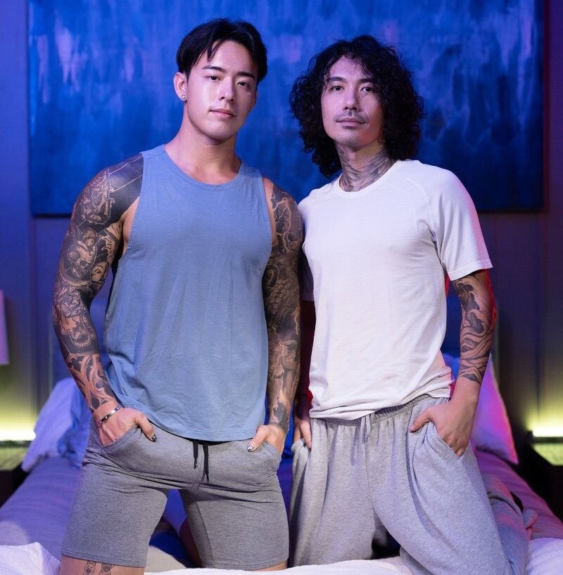 Curly-haired Ocean Hanx is horny, but his clean-cut BF Titus Low is busy gaming. Titus's cock is twitching in his briefs, and he tells Ocean to cum and get it. Ocean strokes that cock and uses it to scroll porn on his phone, then sucks Titus until the top is horny and just has to put the bottom on all fours and fuck his hole. The scruffy-faced bottom rides Titus's cock, then the tattooed hunks fuck hard till Titus cums on Ocean's face as the bottom jacks off.