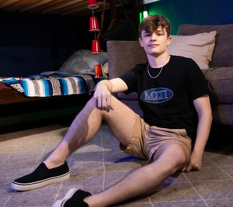 The freshmen are going wild at the big dorm party, under the watchful eye of RA Johnny Donovan. Finn August and Jake Preston dance with their buddy Joey Mills, who tells the pair they should make out because they totally like each other! Joey's right, and the guys kiss on the couch, then Finn sucks Jake. Johnny catches them and tries to find a rule they're breaking, but Joey tells him he should strip and join them! The hot older guy gets into it, especially when Jake and Finn spit-roast him. Then it's Finn's turn to get his holes filled, while Joey directs the action. Johnny rides Jake, then Finn rides the RA till he cums all over Johnny's abs, and Jake covers the RA's face with his load. Johnny pounds the bottom against the bunk till he creampies him.