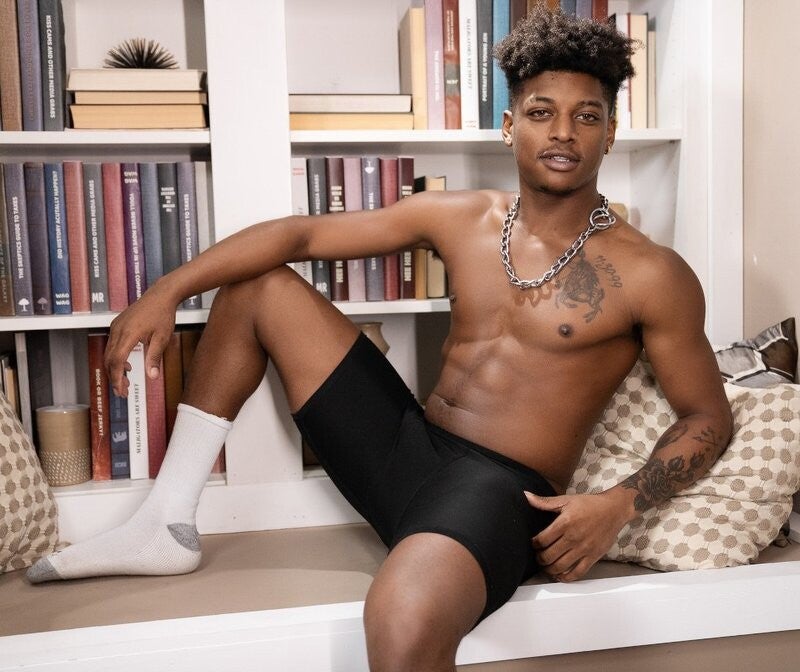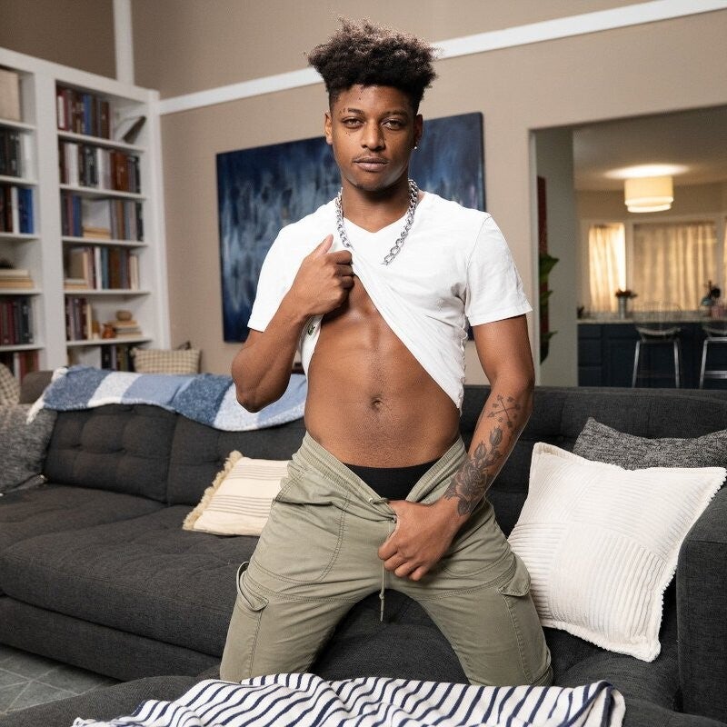 Ty Santana and Kai try to get a threesome happening during movie night with Kai's hot girlfriend, but she shuts them down. The guys are still horny, so as they play a VR game, they start jacking off. When the girl finds a double-ended stroker in the bathroom, she brings it to Kai and tells him to have fun, and he puts it to good use! He and Ty "spit-roast" the toy, then Kai bends over to get fucked. Kai rides the top, then takes it piledriver after the guys lick each other. The bottom orgasms as his buff roommate drills him on his back, and Ty cums on his face!