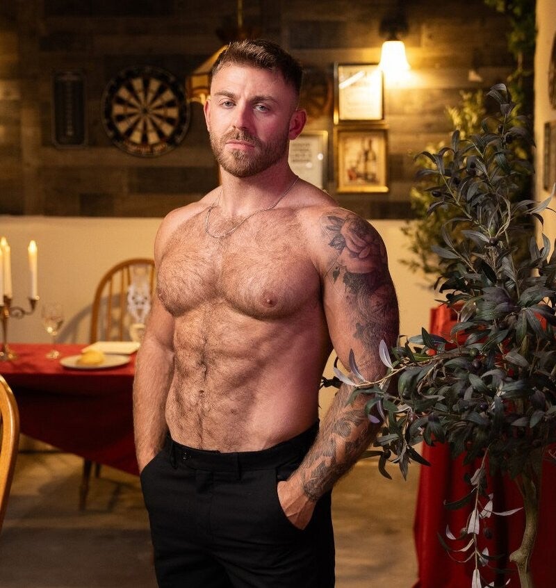 Dom King and his husband Scott Braun's special anniversary dinner is rudely interrupted by frenemies Cookie and River's unexpected arrival at the restaurant and the ensuing huge scene. After Dom chases them off, Scott calms his husband down, and they share romantic spaghetti for two that ends with PDA so blatant, the waiter runs away to the kitchen. The guys undress and suck each other, clearing the table so Dom can bend his husband over it. Scott rides the top on a chair, then Dom fucks the bearded hunk on the table until his husband cums. Scott's anniversary present: a facial!