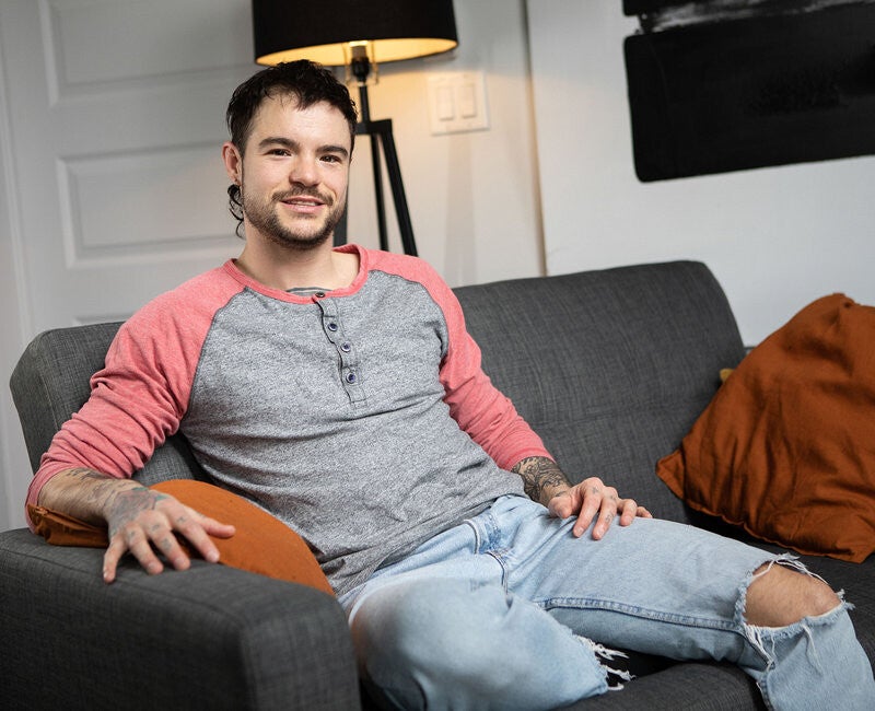 Tommy Tanner doesn't want to mess around with his roommate, Chuck Conrad; he'd rather play a horny VR game. Chuck comes back and sees Tommy with the headset on and a dildo in his hole, and can't help shooting a hot load across Tommy's face! When Tommy catches Chuck jacking it with the goggles on a little later, he gets him back by squirting on him, then decides to suck and ride the real thing. Chuck pounds the Tguy in spoon and doggystyle, then cums on Tommy's face.