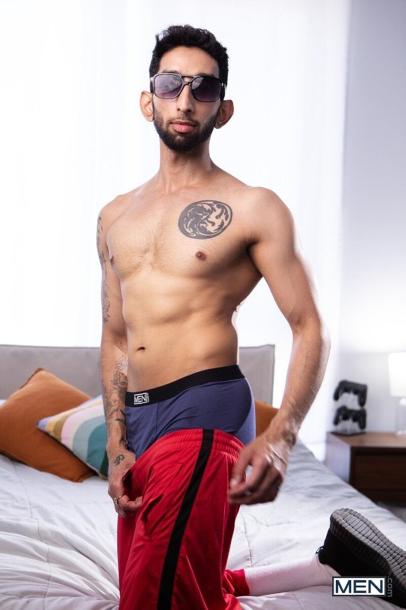 When Theo Dore crosses paths with Ram Sivan on his way home, the DL hunk looks around to make sure nobody's watching before returning the mustached hottie's flirting. Ram pulls up his hood before coming home with Theo, and he won't kiss or even take off his shades, so Theo dives straight for that dick. After getting a BJ, Ram bends the bottom over to fuck him before Theo rides his cock. The bottom orgasms as Ram fucks him on his back, and Ram gives him a facial, then suits back up for a speedy exit.