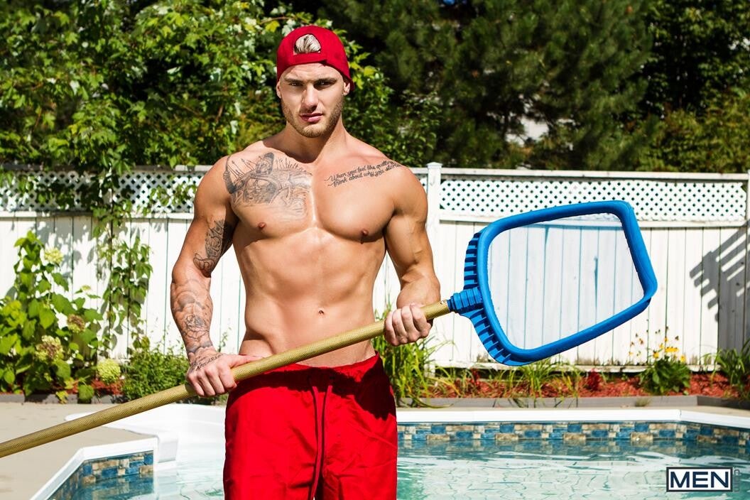 Slender, fit Thyle Knoxx is on his way over to his father’s place, and he’s looking forward to meeting the new pool boy that his dad hired. He immediately starts crushing on buff, tattooed William Seed upon seeing the bare-chested stud standing by the pool. Horny Thyle heads indoors to change into his swim trunks hoping dreamy William will want to take them right off, and slide his thick, uncut cock between his cheeks.