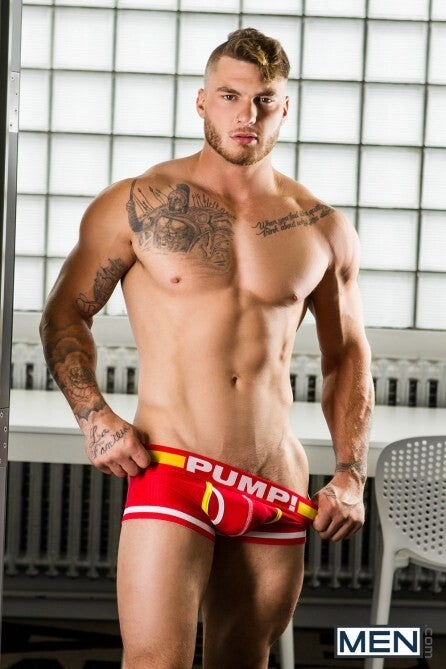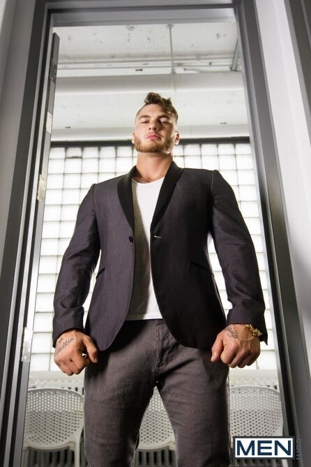 Derek Allan, is good-looking, well-built and late handing in his report! His teacher, chiseled William Seed, is putting the pressure on him and wants the report handed in asap! Well, Derek only has one thing on his mind and with one snap of his fingers, William is standing in front of him butt naked. He takes the opportunity to quickly get down on his knees so William can pump his massive dick in and out of his horny mouth and bottom, getting him to blow that seed!