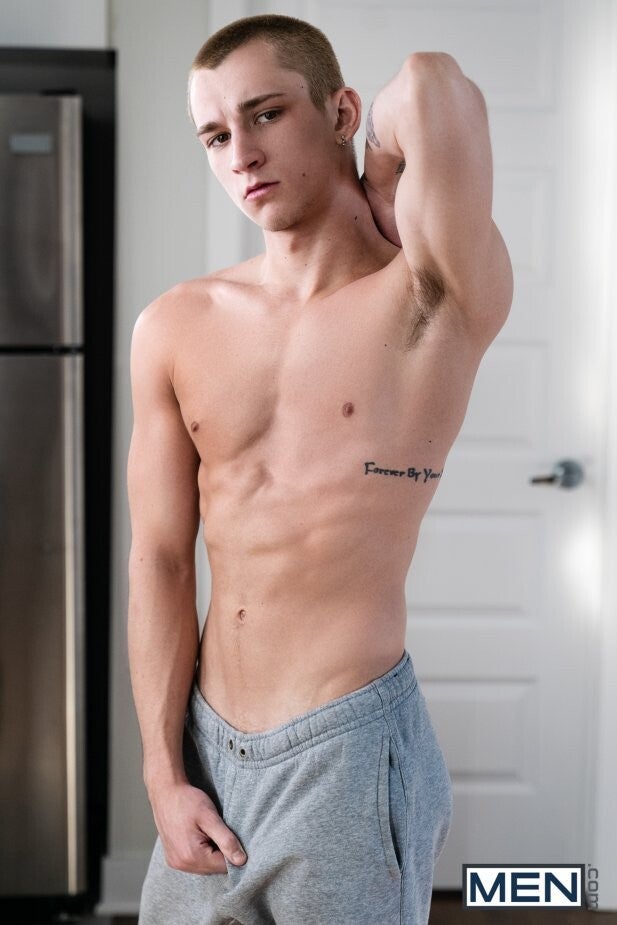 There's been a bit of a mixup on the schedule, because when William Seed arrives at his sugar daddy's place, Theo Brady is already there and getting fucked. Their sugar daddy's ho-hum boning leaves something to be desired, and Theo desires William's fat cock so he takes a little break to suck it on the couch. When the old man finds out William's there, he pops out his false teeth to give the tatted top a bj, but William blindfolds him and makes him wait while he secretly pounds Theo's ass in doggystyle! The sugar daddy's not happy when he finds out his sugar babes are playing with each other instead of him, but they lock him in the bedroom so Theo can ride William's cock till he cums, then William gives Theo a facial!