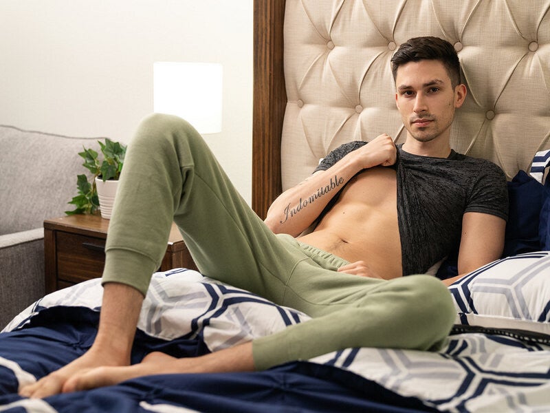After a long day of fun, Kane Fox is horny, but his bf Cristiano says he's too tired for even a blowjob! When twink Joey Mills peeks in, Kane's prayers are answered, so he kneels by the side of the bed as Joey gets underneath and sucks him. When Kane's boyfriend discovers Joey under the bed, he storms out, giving the horny twinks the opportunity for some release! Kane rims Joey, then fucks his mouth before they 69, and the top bends Joey over the side of the bed to give him every inch of his dick. Kane fucks the bottom in missionary and spoon, then Joey orgasms as he rides him before Kane pulls out and cums on his hole!