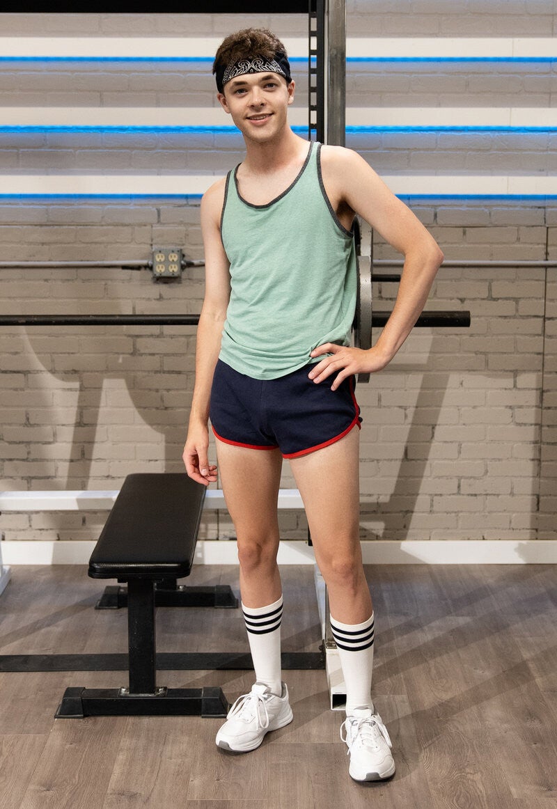 Twink Troye Dean is hitting the gym when muscular hunk Johnny Donovan walks in and renders him speechless. He can't tear his eyes away from Johnny's fit body and tries to follow along with Johnny's workout routine... with much smaller weights, of course. The twink's firm ass attracts Johnny's attention, and when Troye is trying to bench press, Johnny sits on his face, then fucks his throat! The guys suck each other and Johnny rims the bottom, then fucks him doggystyle. After Troye rides him, Johnny bench presses the twink, then fucks him till they both cum.