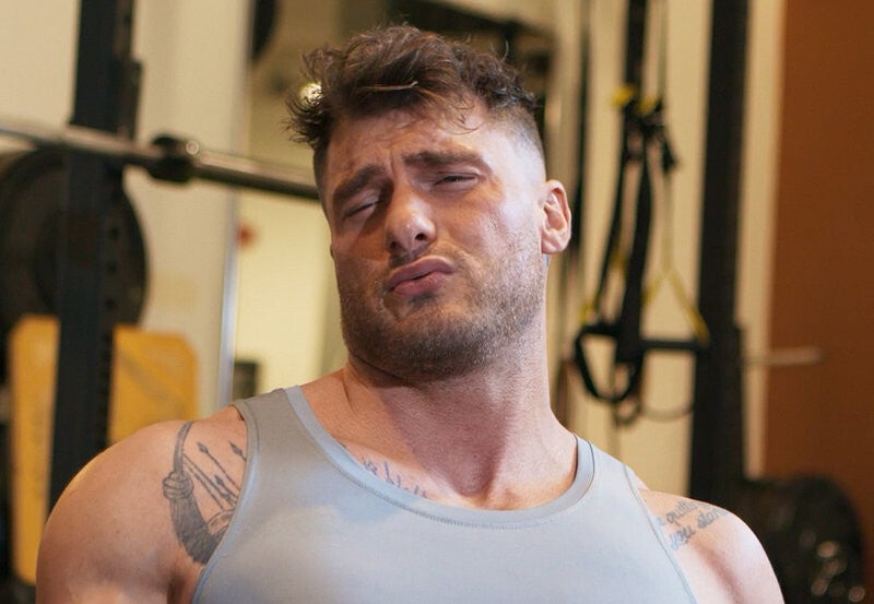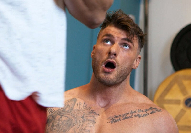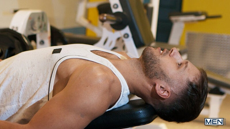 William Seed and Arno Antino are the only ones in the gym at this hour, making it even easier to check each other out. Arno notices William's hard dick poking out his shorts and just has to help himself to a taste of precum! William puts his face under Arno's ass at the squat rack, and soon Arno is sucking the top in the locker room. William pounds the bottom in doggystyle, and Arno rides that big dick. Both guys cum as William drills Arno on his back!