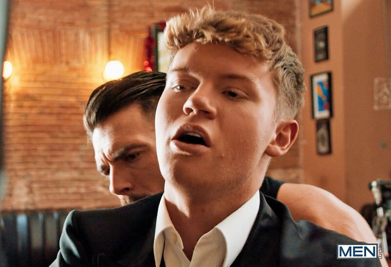 It's been a long time, but Paddy O'Brian is back in town and ready to do some business! Irish twink Dean Young admires the hot motorcyclist as he walks into the pub, eyeing him and even lifting his kilt to flash Paddy his tackle! Paddy takes that as an invitation to come over and show Dean his, opening his fly to take out his cock. Paddy fucks the twink against the bar, and after the barman leaves them to it, the guys suck each other, then Paddy teases Dean's hole before sliding inside again. Dean rides the top before licking Paddy's hole, and Paddy fucks the bottom on his back before the guys cum in each other's mouths.