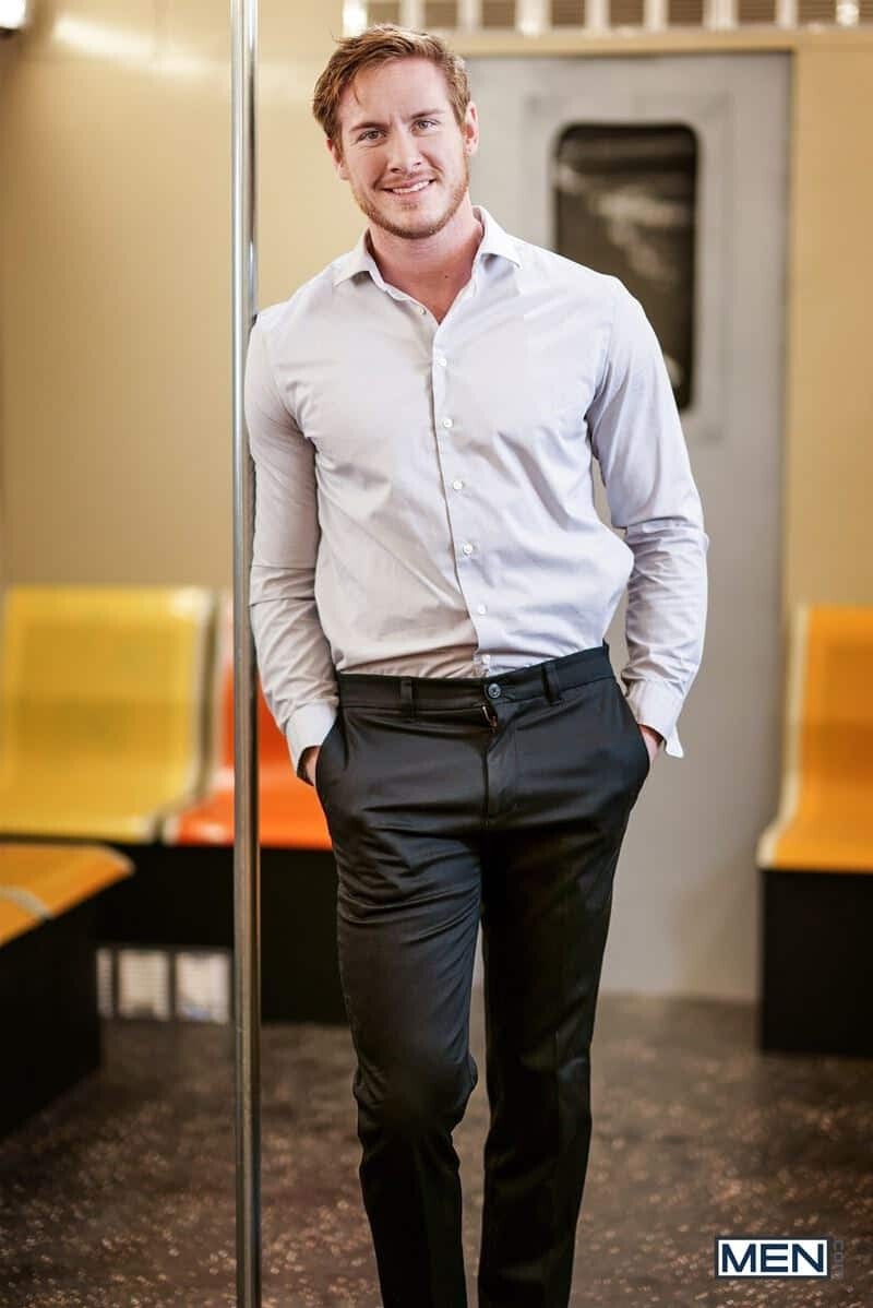 Besuited businessman Jax sees hot twink Joey Mills checking him out on the subway. He slides closer so he can play a little footsie, massaging Joey's bulge with his socked toes. As they meet across a pole from each other, they touch each other's poles and Joey drops to his knees to deepthroat Jax's huge cock. The tall, jacked top rips open Joey's boxers and fucks him doggystyle before taking a seat as Joey jumps him like a turnstile. Joey's face gets pressed against the glass as Jax pounds him up against the doors, then the top lays him back on the seats as his subway train enters Joey's tunnel. Jax gives Joey a big facial, and the twink's load lands on the pole.