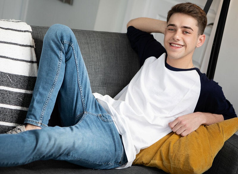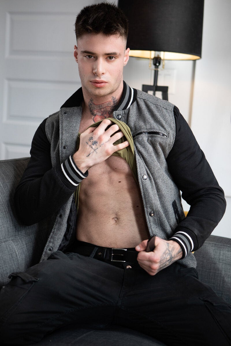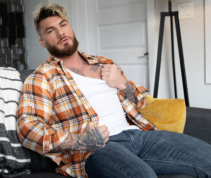 Joey Mills is horny, but his tattooed boyfriend, Bruce Huxley, won't even look up from his phone when Joey grinds against him. The horny bottom turns his attention to Bruce's hot roommate William Seed, sucking him and sneakily fucking him on the couch, then goes to take a shower. William follows, fucking the bottom doggystyle and hiding behind the shower curtain when Bruce gets a blowjob from Joey! Then they sneak back to William's room, where he fucks the bottom missionary and Joey rides him till they cum.