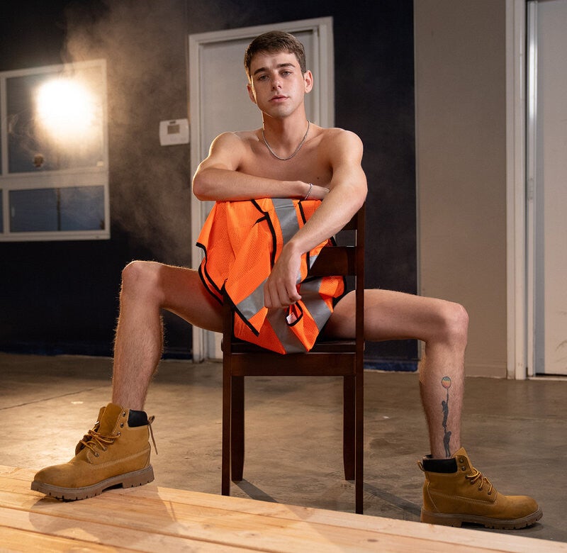 Jay Stroke is horny at work, so he checks he's alone before taking out his dick. He's so into jacking himself, at first he doesn't notice Joey Mills approaching! The twink has a naughty idea, and he ties Jay up, teasing him with kisses and caresses, then finally strokes his cock... but doesn't let him cum! Joey edges Jay over and over, teasing him with his mouth until Jay is straining to bust. He sits on Jay's face and they 69, then Joey gives Jay's cock and balls some concentrated attention. Joey rims Jay until he's begging to cum, then finally lets Jay unleash a hands-free cumshot that turns Joey on so much, he jacks off on Jay's hairy chest.
